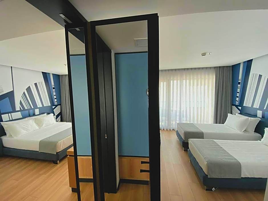 Providing free toiletries and bathrobes, this family room includes a private bathroom with a shower, a bidet and a hairdryer. The spacious air-conditioned family room provides a flat-screen TV with satellite channels, soundproof walls, a mini-bar, a coffee machine as well as sea views. The unit offers 3 beds.